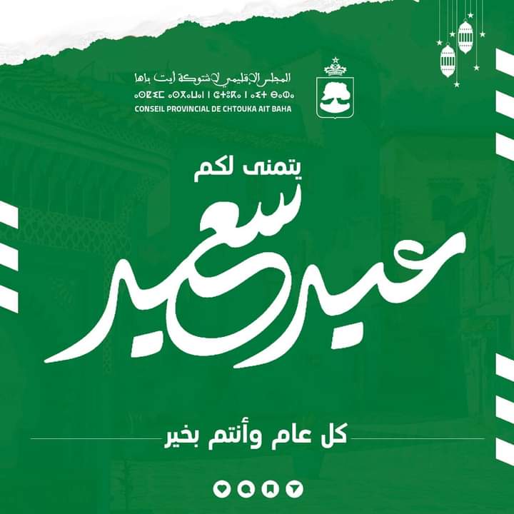 بمناسبة حلول عيد الأضحى المبارك غدا الخميس 29 يونيو 2023، يتشرف السيد ادر اصيت رئيس المجلس الاقليمي لشتوكة آيت باها ، أصالة عن نفسه ونيابة عن أعضاء المجلس الاقليمي وموظفي المجلس، بتقديم أطيب التهاني وأصدق الأماني إلى أمير المؤمنين حامي حمى الملة والدين صاحب الجلالة الملك محمد السادس نصره الله.
