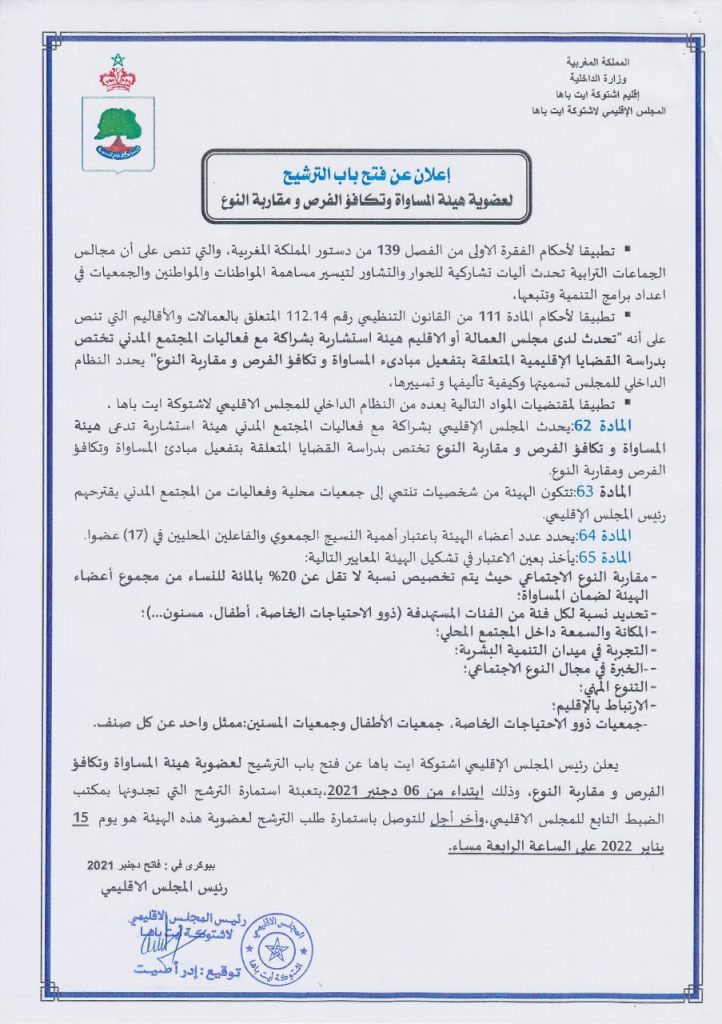 الرئيسية/إعلانات/إعلان عن فتح باب الترشيح لعضوية هيئة المساواة و تكافؤ الفرص و مقاربة النوع إعلانات إعلان عن فتح باب الترشيح لعضوية هيئة المساواة و تكافؤ الفرص و مقاربة النوع المجلس الإقليمي لأشتوكة أيت باها أرسل بريدا إلكترونيا ديسمبر 6, 20210 642 أقل من دقيقة فيسبوك تويتر لينكدإن Tumblr بينتيريست Reddit VKontakte Odnoklassniki بوكيت المجلس الإقليمي لأشتوكة أيت باها أرسل بريدا إلكترونيا ديسمبر 6, 20210 642 أقل من دقيقة فيسبوك تويتر لينكدإن Tumblr بينتيريست Reddit VKontakte Odnoklassniki بوكيت شاركها فيسبوك تويتر لينكدإن Tumblr بينتيريست Reddit VKontakte Odnoklassniki بوكيت مشاركة عبر البريد طباعة