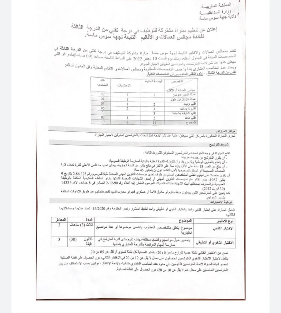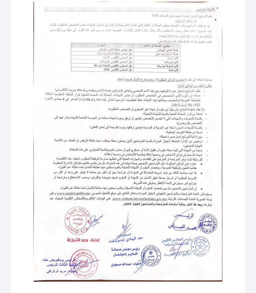 المجلس الإقليمي لشتوكة آيت باها يعلن عن مبارة للتوظيف
